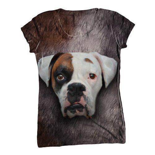 AnimalShirtsUSA-"Boxer Dog Face" Womens Top - C-Neck T-Shirt-Medium